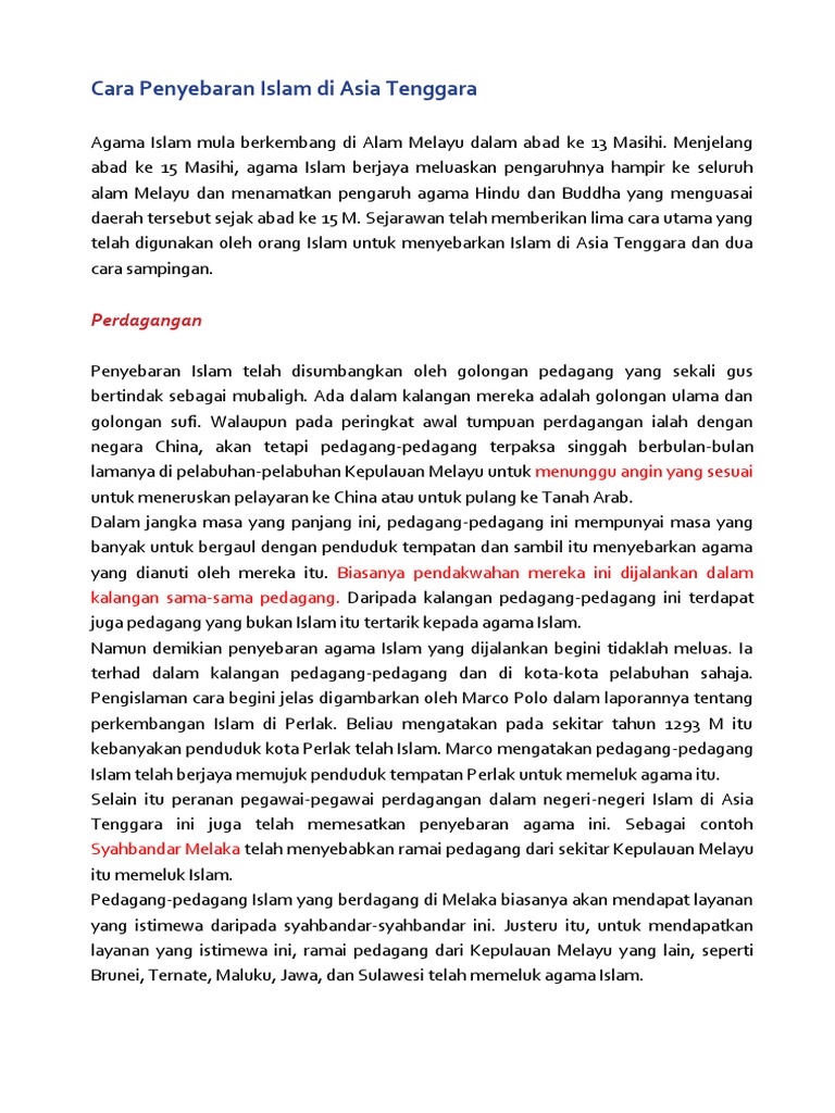 Cara Penyebaran Islam Di Asia Tenggara Pdf